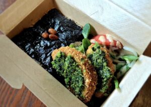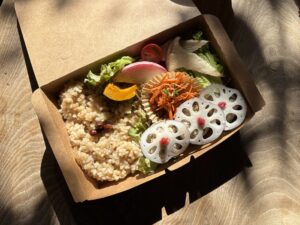 *カフェスロー特製のオーガニックのお弁当を事前予約でお受けしています(後述)。ぜひご利用ください。